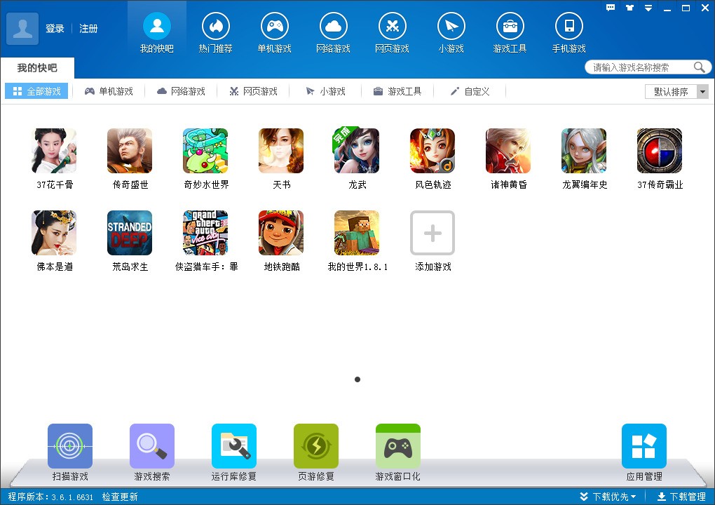 管理用户电脑中的所有单机、网络游戏,为用户提供一个安全方便的游戏桌面。