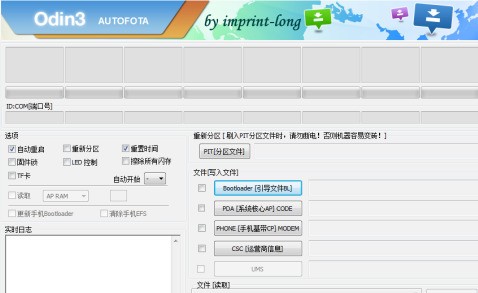 Odin3刷机工具(odin刷机工具)能够帮助用户刷入手机文件。包括的文件有手机分区文件,bootloader引导文件,pad系统核心文件,phone手机基带,csc运营商信息等等。软件设置好了自动启动,重新分区,重置时间,固件锁,led控制等参数后,就可以开始正式刷机啦。