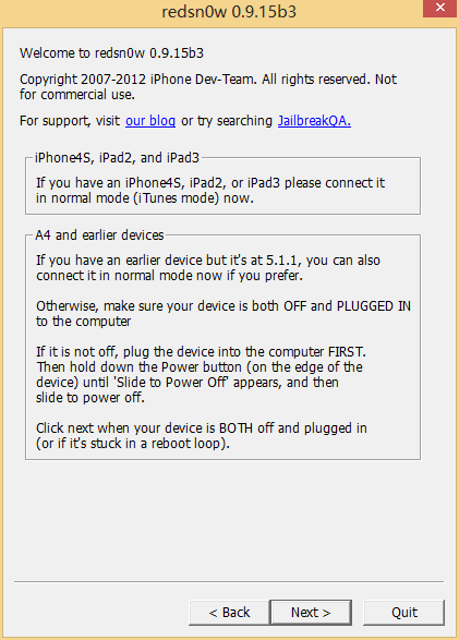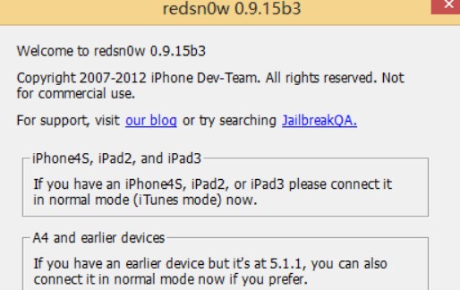 就在苹果iOS6.0.1固件更新之后没多久,RedSn0w也进行了更新,最新版本为RedSn0w 0.9.15b3。目前仅支持四代以下iOS设备(iPhone 4和iPad 2)进行越狱,只不过除了本次越狱是不完美越狱之外,也不支持A5和更新版本芯片的iOS设备。
