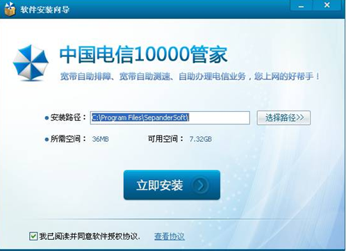 中国电信10000管家是一款专门为电信用户定制的网络自助服务软件。它集成了网络排障、宽带业务自助办理、远程修复电脑、专业测试网速及一些常用的清理杀毒软件,是您上网时的好帮手。